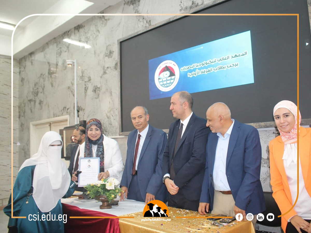 نظم المعهد العالي لتكنولوجيا البصريات حفل استقبال للطلاب الجدد للعام الدراسي الجديد، تضمن تكريم أوائل الدفعة تقديرًا لتفوقهم الأكاديمي وتميزهم الدراسي، إلى جانب تكريم أعضاء هيئة التدريس الذين حصلوا على درجات علمية جديدة، تقديرًا لجهودهم ومساهماتهم في الارتقاء بالمستوى الأكاديمي للمعهد.