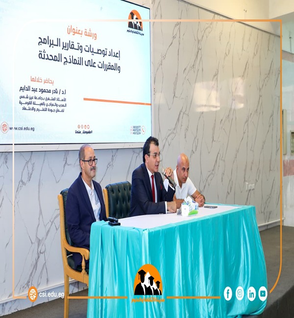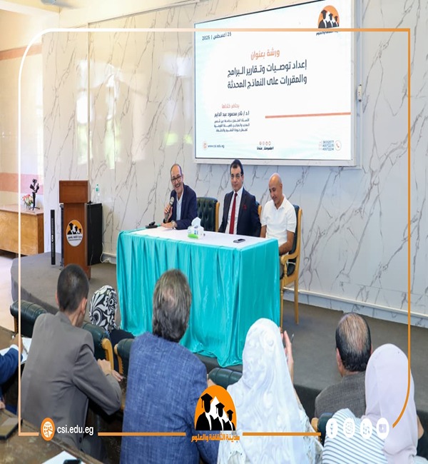 تناولت الورشة استعراض التعديلات الجديدة الواردة في النماذج المحدثة الخاصة بتوصيف البرامج وتقارير المقررات، وشرح آليات تطبيقها وفقًا لمعايير الهيئة القومية لضمان جودة التعليم والاعتماد، وإبراز دور هذه التحديثات في تعزيز كفاءة الأداء الأكاديمي ودعم فرص الاعتماد المؤسسي والبرامجي.