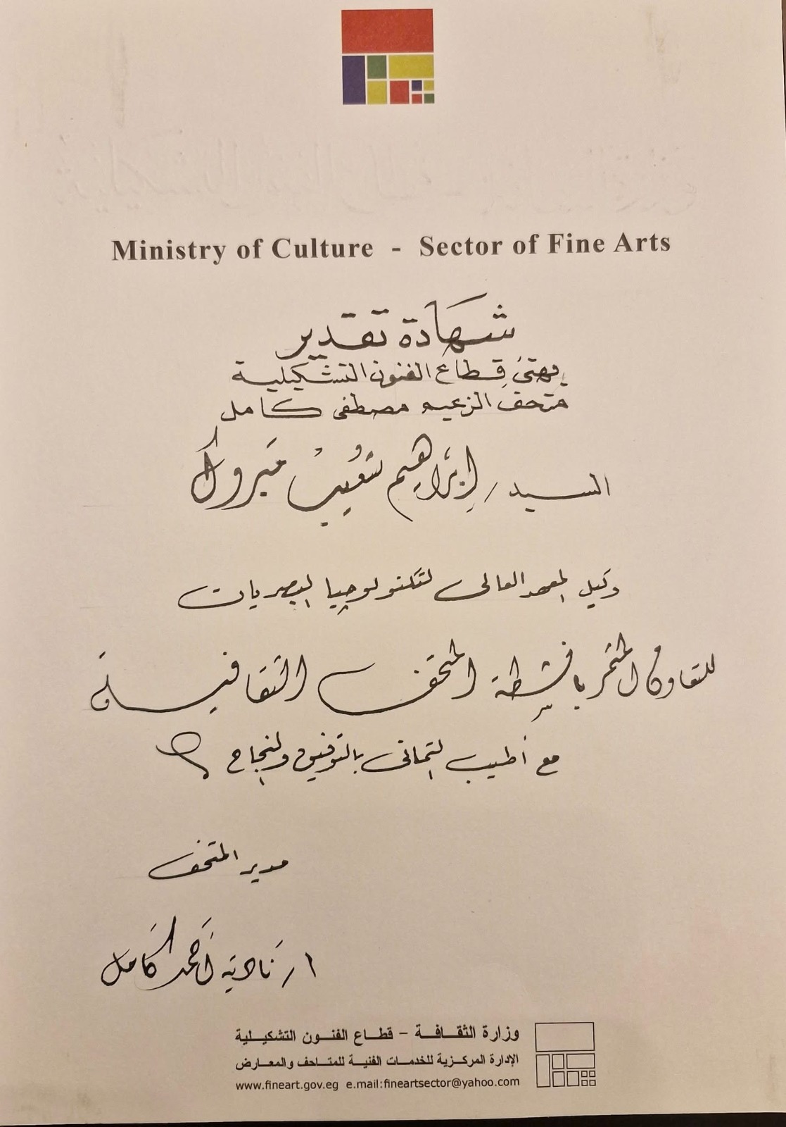 البصريات – في إلقاء محاضرة بعنوان "أنماط الشخصية"، وذلك بمتحف الزعيم مصطفى كامل تحت رعاية وزارة