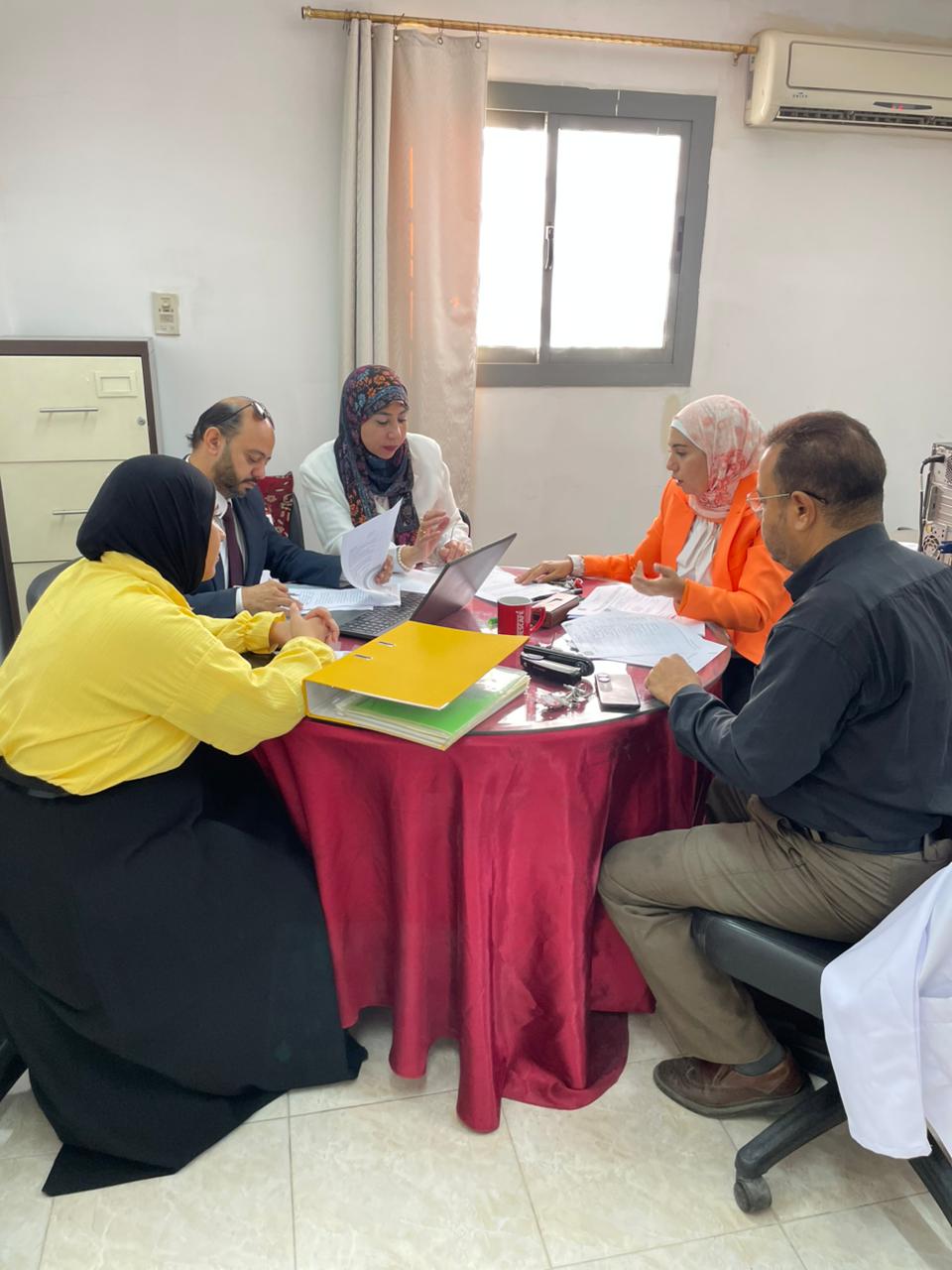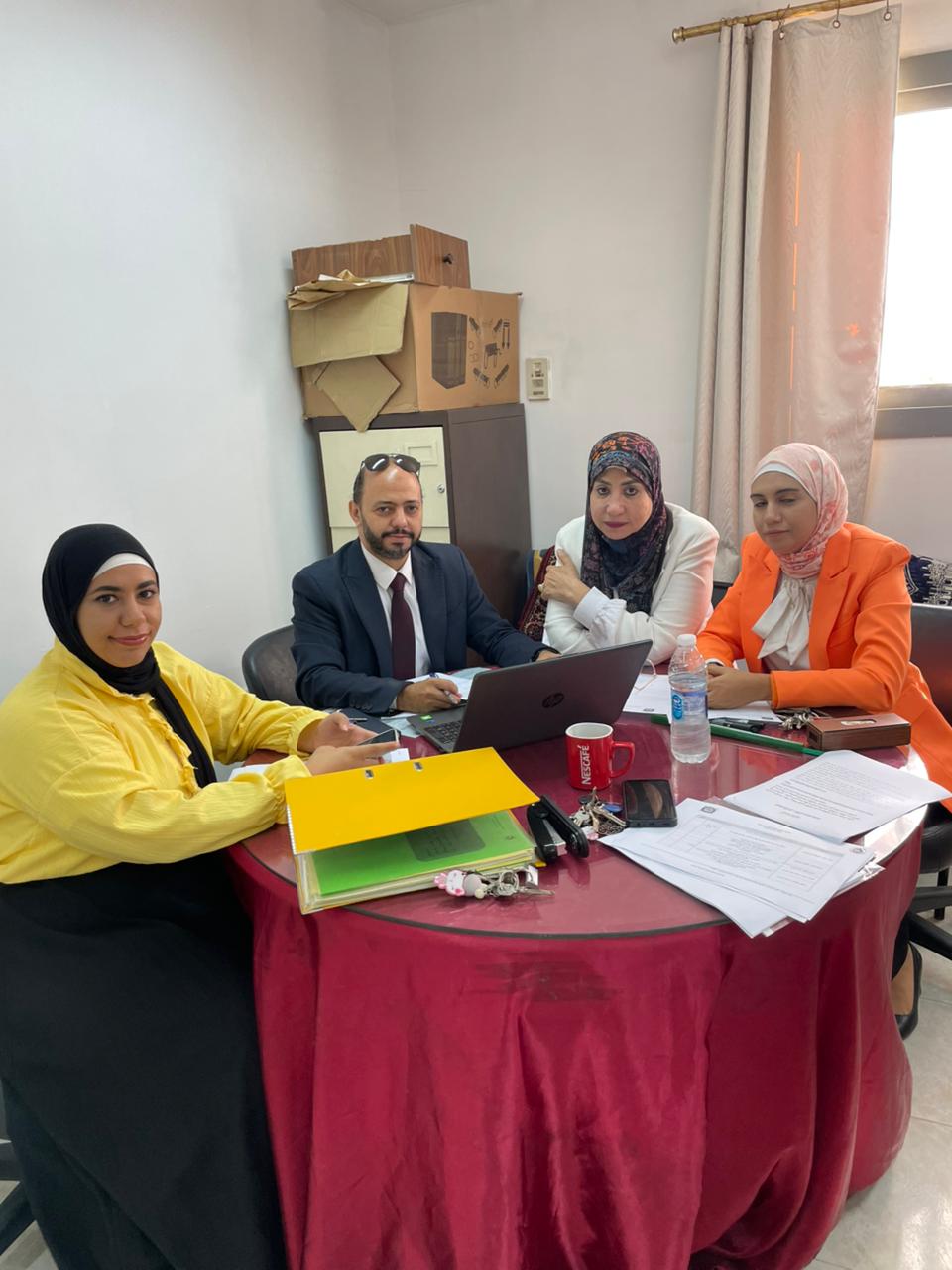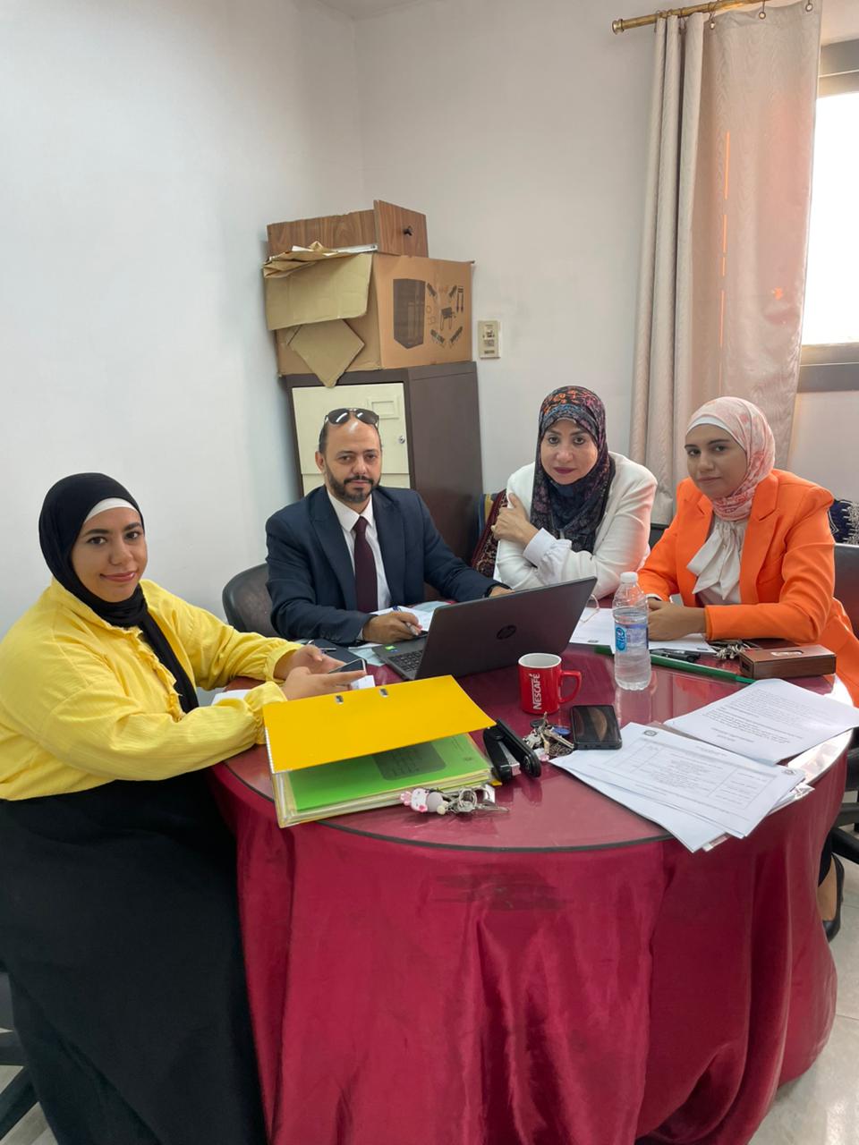 إيمان إبراهيم، مديرة الوحدة، وبحضور منسقي المعايير، وذلك لمراجعة أعمال الجودة