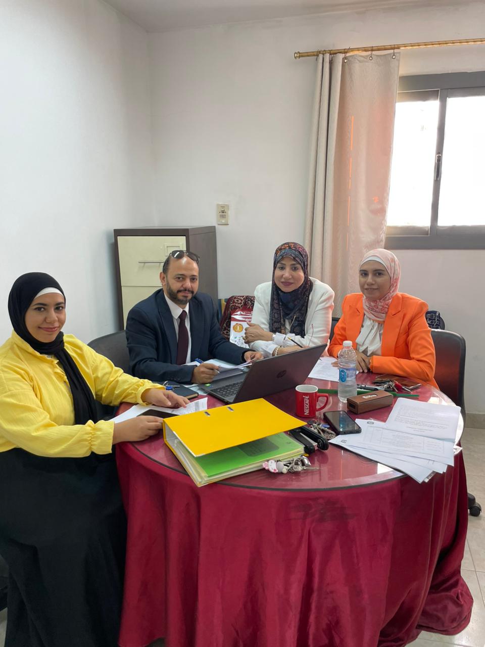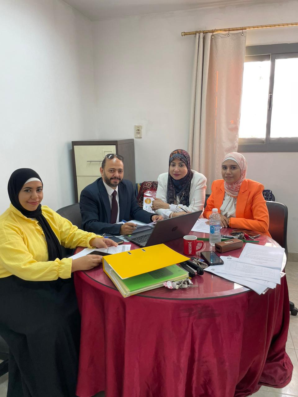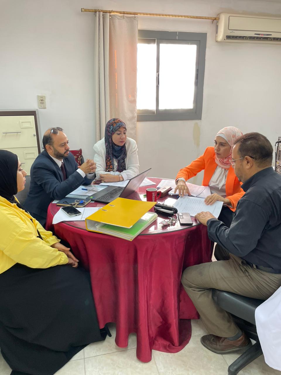 إيمان إبراهيم، مديرة الوحدة، وبحضور منسقي المعايير، وذلك لمراجعة أعمال الجودة