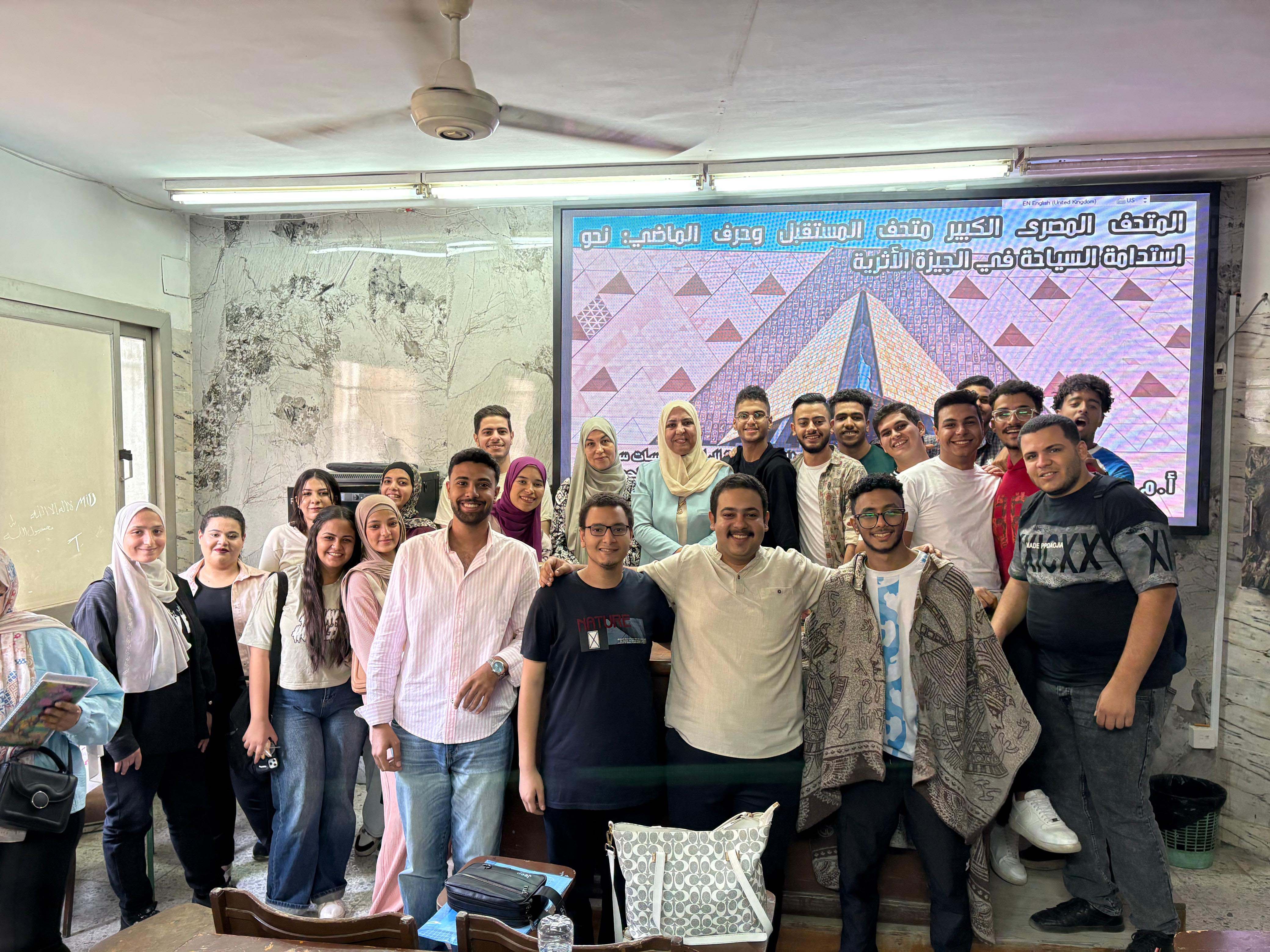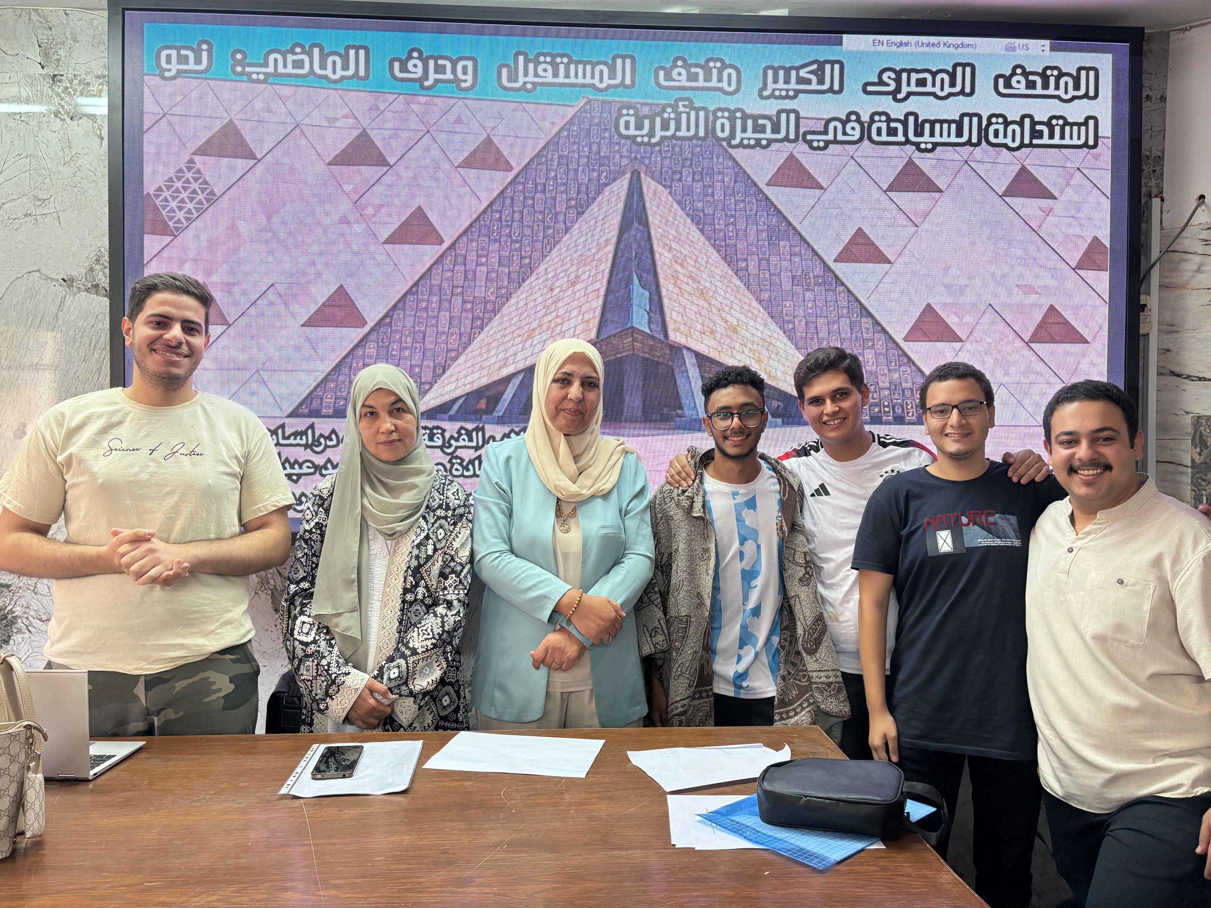 وشارك في الندوة مجموعة من طلاب الفرقتين الثالثة والرابعة – دراسات سياحية – من خلال عرض فيديو مميز عن المتحف المصري الكبير ومحتوياته، قدموا خلاله معالجة واعية وإبداعية لقضايا الاستدامة السياحية.