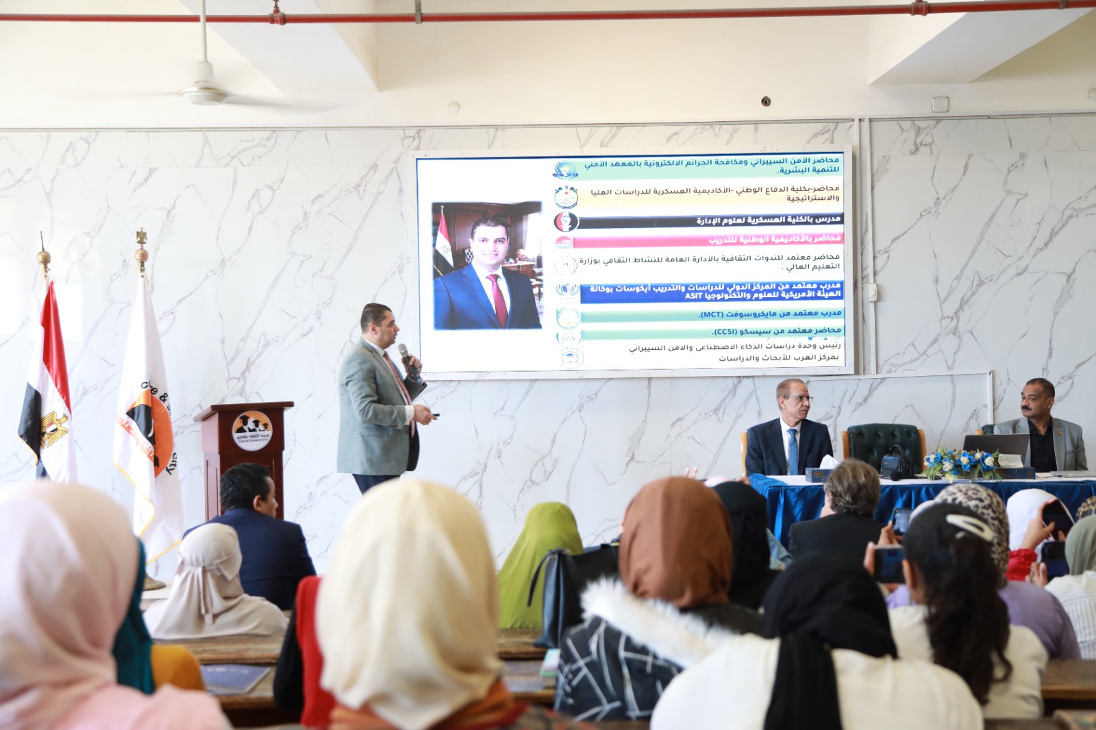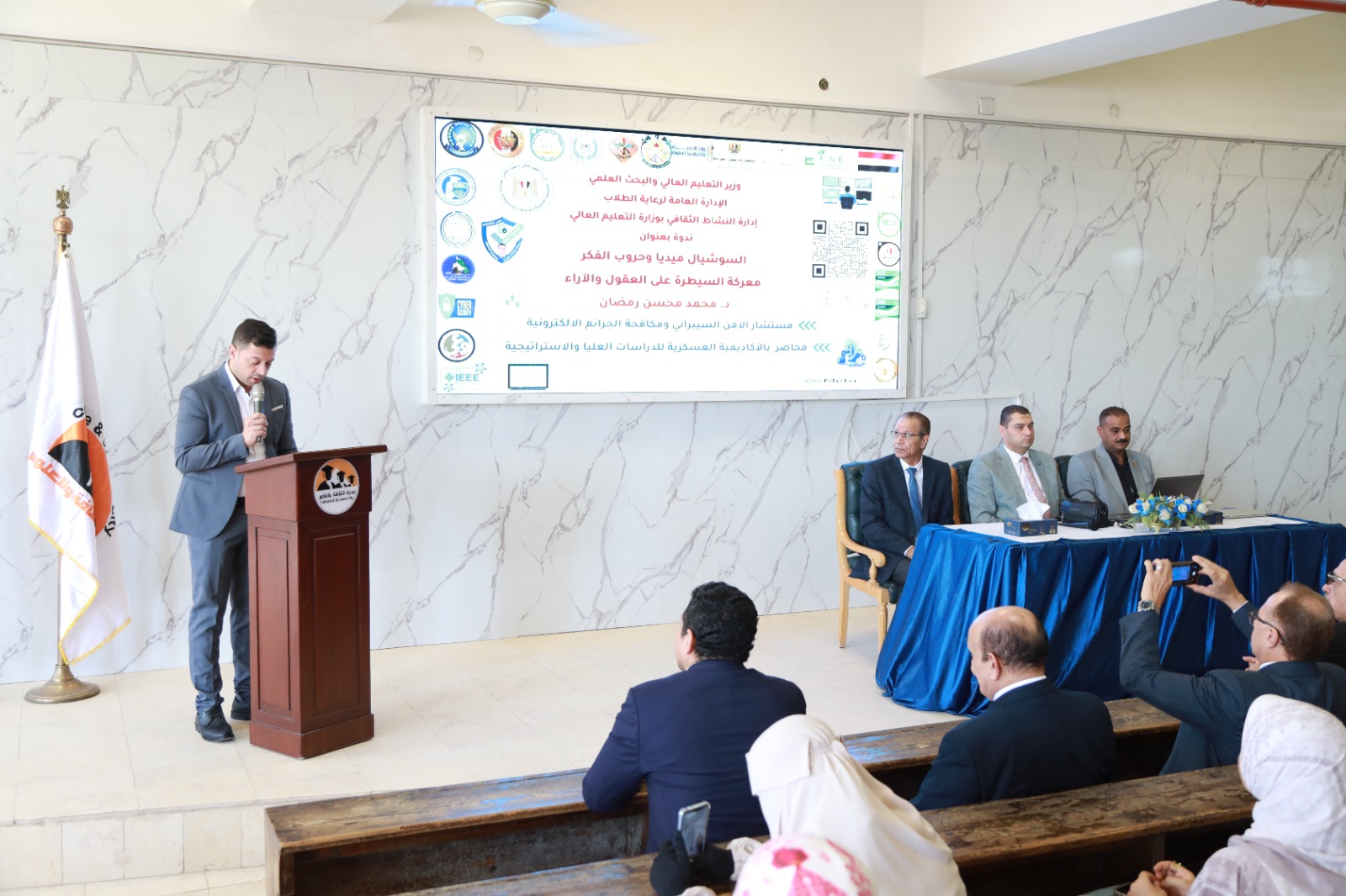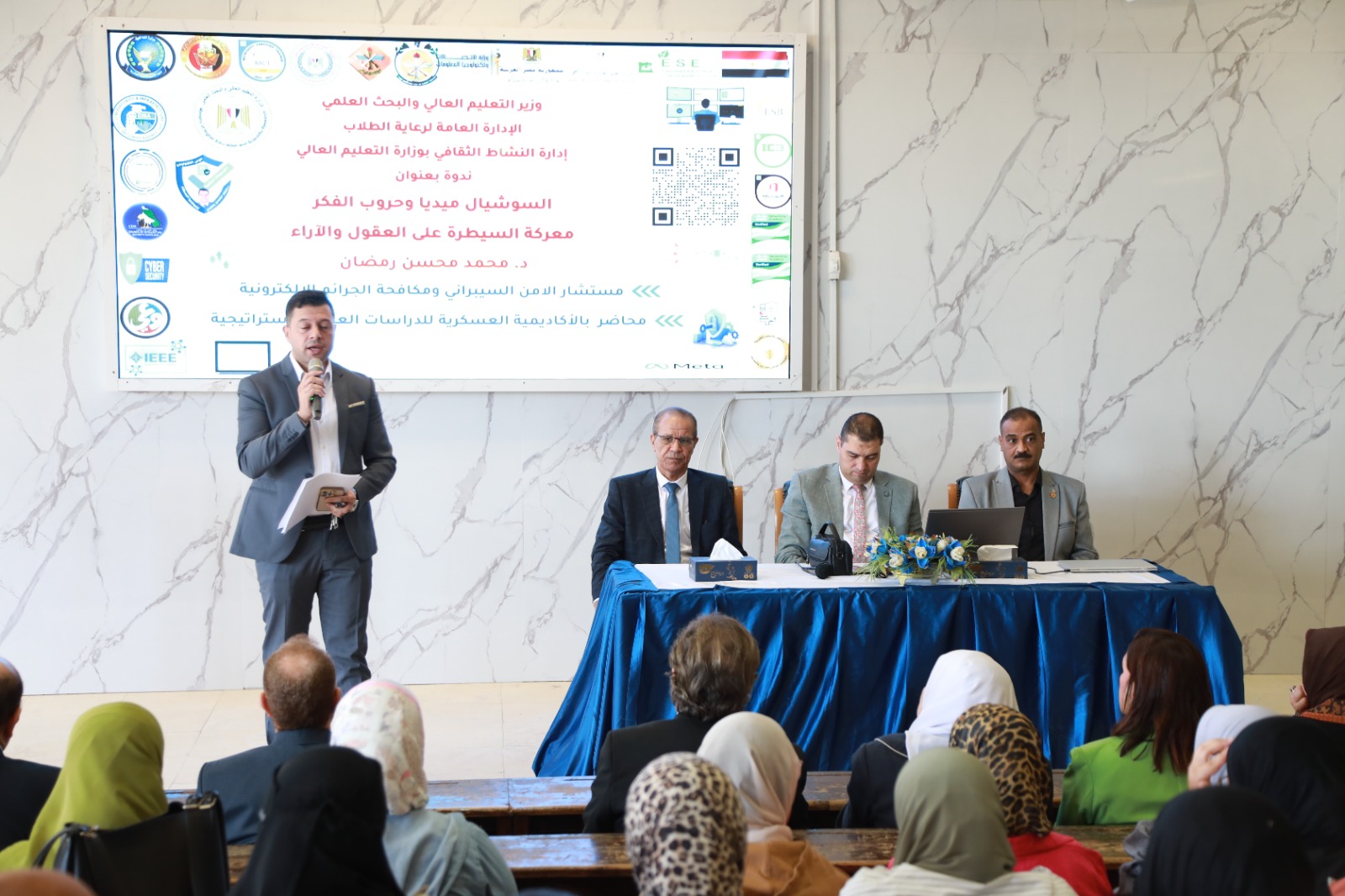 قدم الندوة الدكتور محمد محسن مستشار الأمن السيبراني ومكافحة الجرائم الإلكترونية، حيث تناول التأثيرات السلبية للإفراط في استخدام منصات التواصل الاجتماعي، ومخاطر الإدمان الإلكتروني، إضافة إلى أفضل الطرق للحفاظ على الخصوصية وحماية البيانات الشخصية