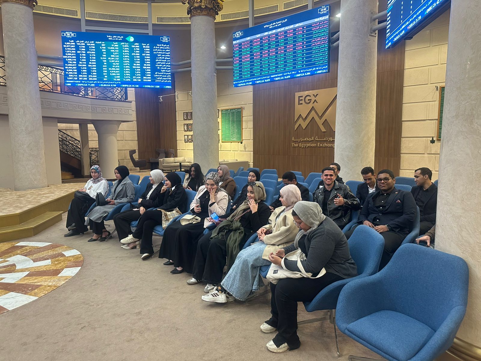 واستمع الطلاب خلال الزيارة إلى محاضرة تعريفية تناولت نشأة البورصة المصرية وتاريخها العريق، ودورها المحوري في دعم الاقتصاد الوطني وتعزيز مناخ الاستثمار في مصر، إلى جانب التعرف على آليات التداول وأهم الأدوات المالية المتداولة في السوق.